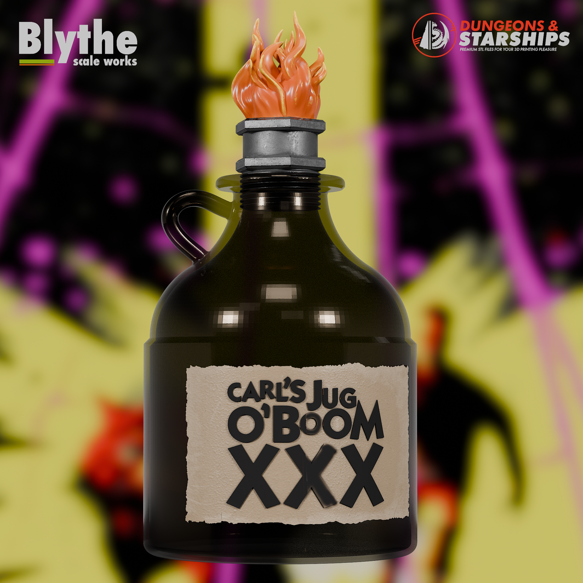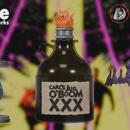 Carl's Jug O' Boom - This ol jug of Moonshine comes in two variations, a corked verson and a flame version. The Torch connector is threaded so it can be screwed in and out if you decide to put LED lighting on the underside of the flame.