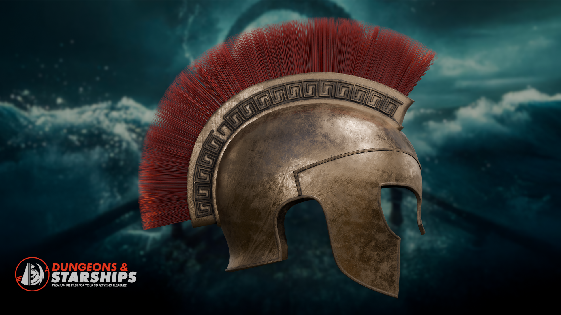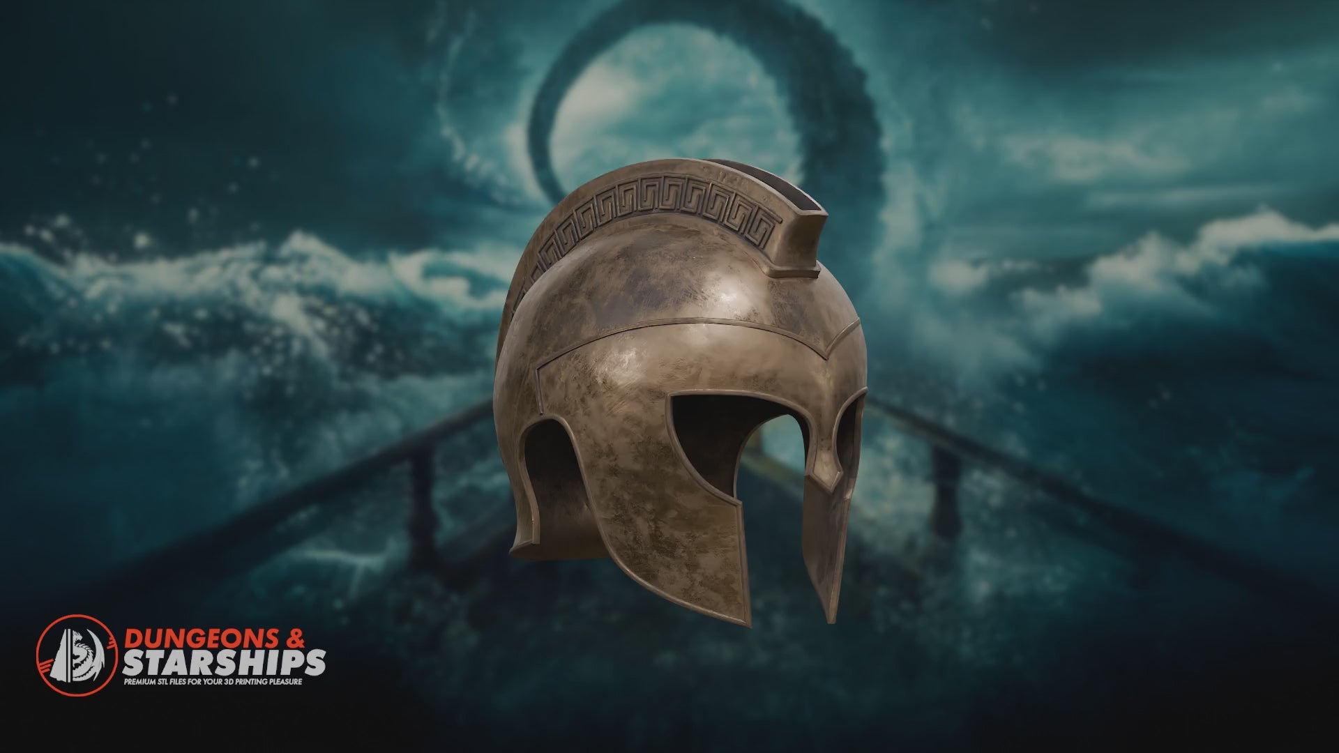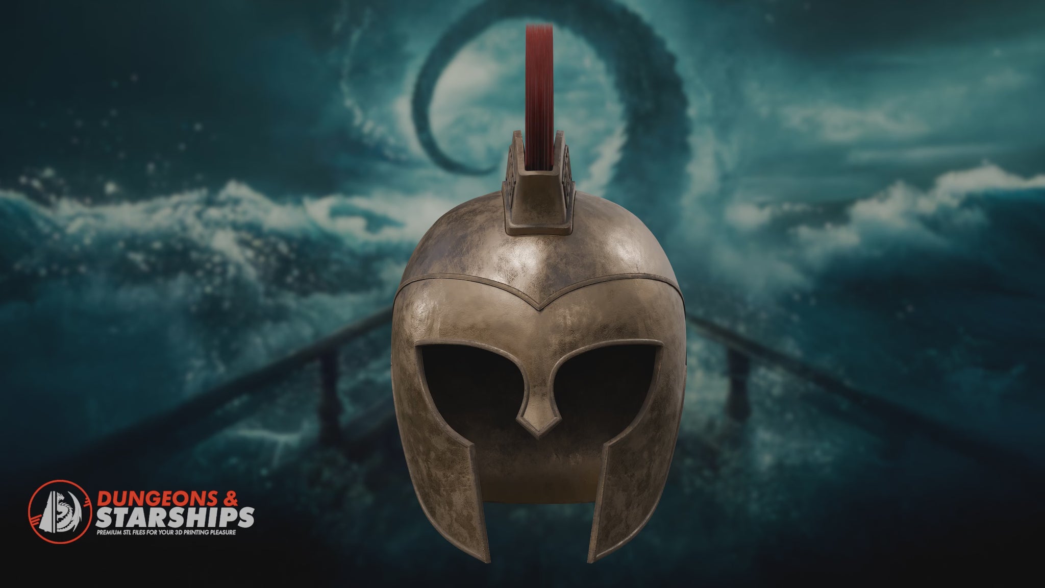 This model is our take on the helmet seen in season 1 of Percy Jackson during the Camp Half-Blood capture the flag event.