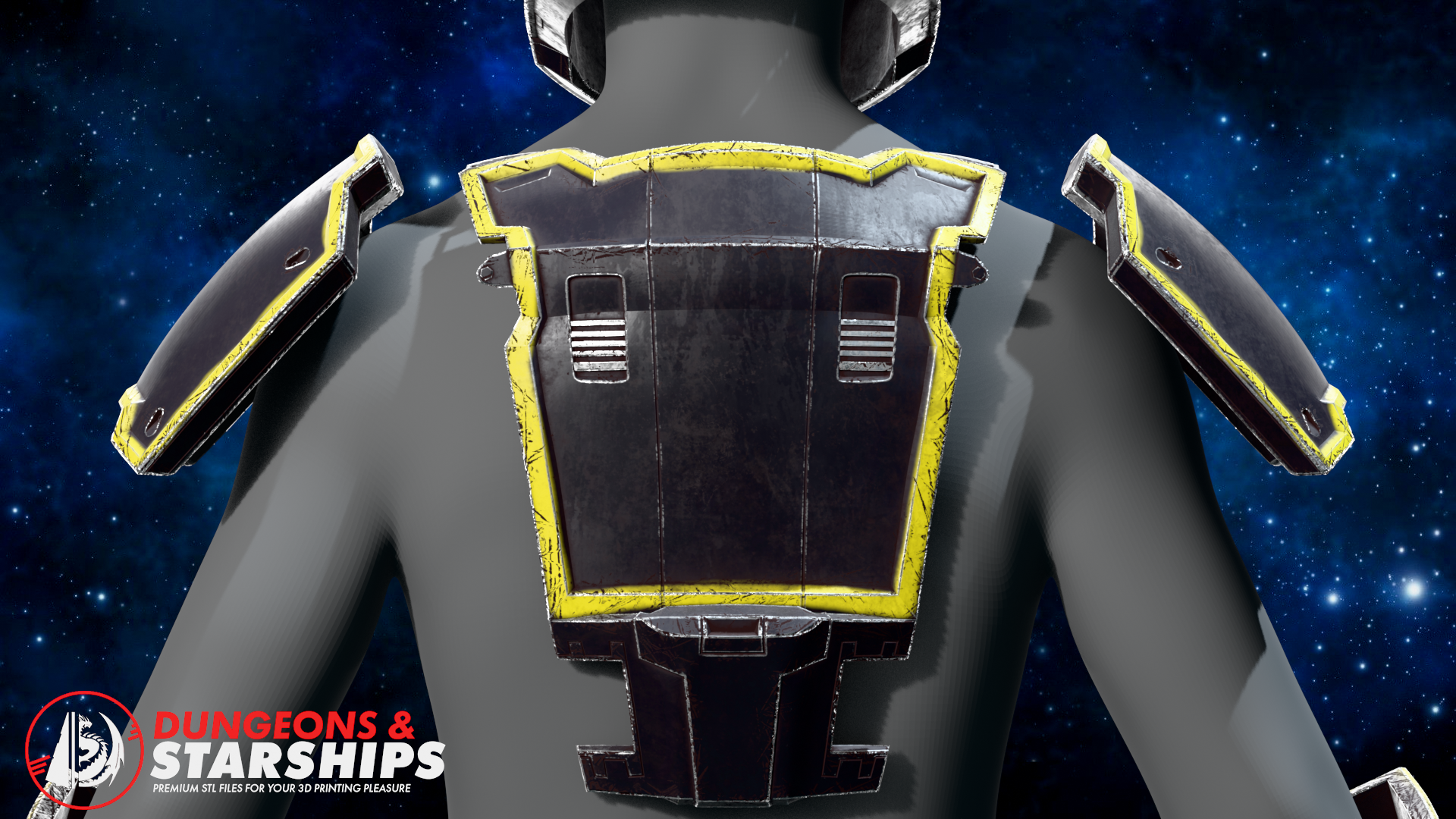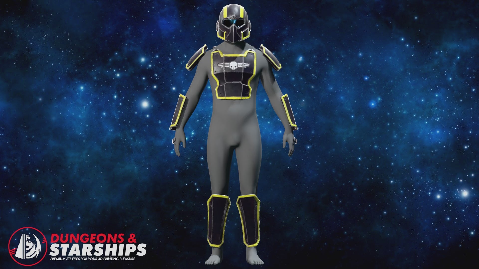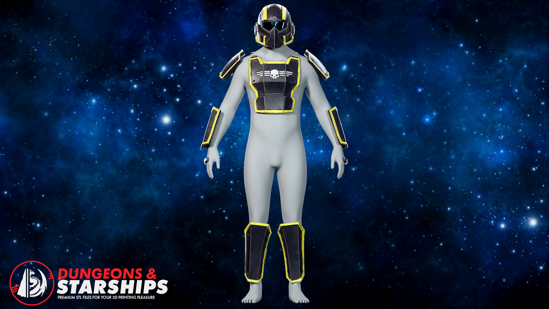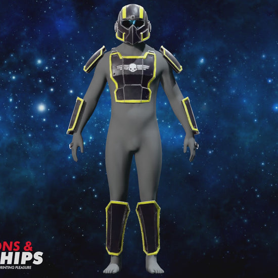 This set is split into several parts for easy printing with buckles pre-modelled into the armour. The helmet is scaled around a 23" diameter head, so as with all helmets, I highly recommend using a software to help scale to your respective build as the neck seal can be quite tight.