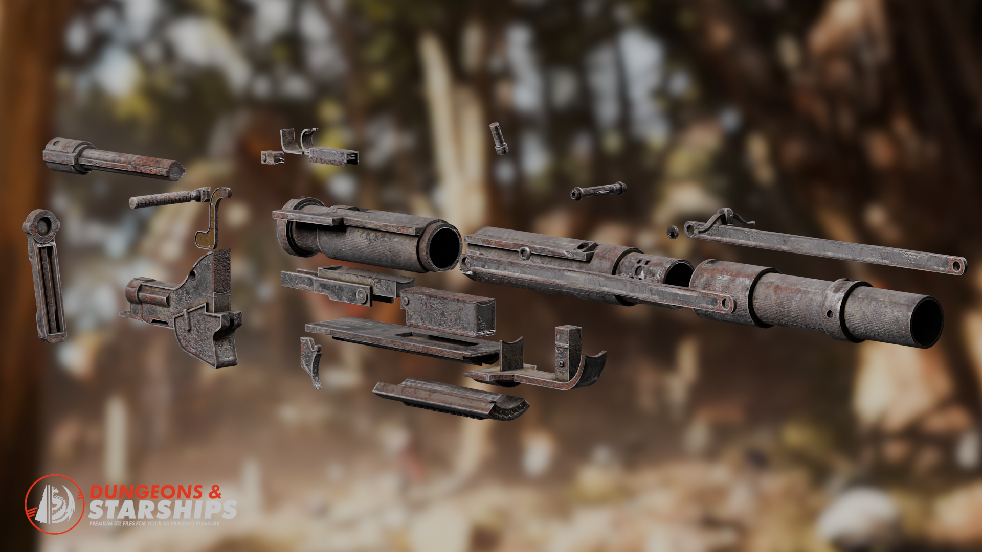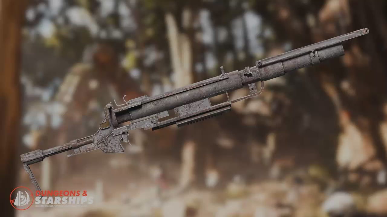 This break action, heavy ammo rifle is broken down into several parts for easier printing, post processing and weathering.
