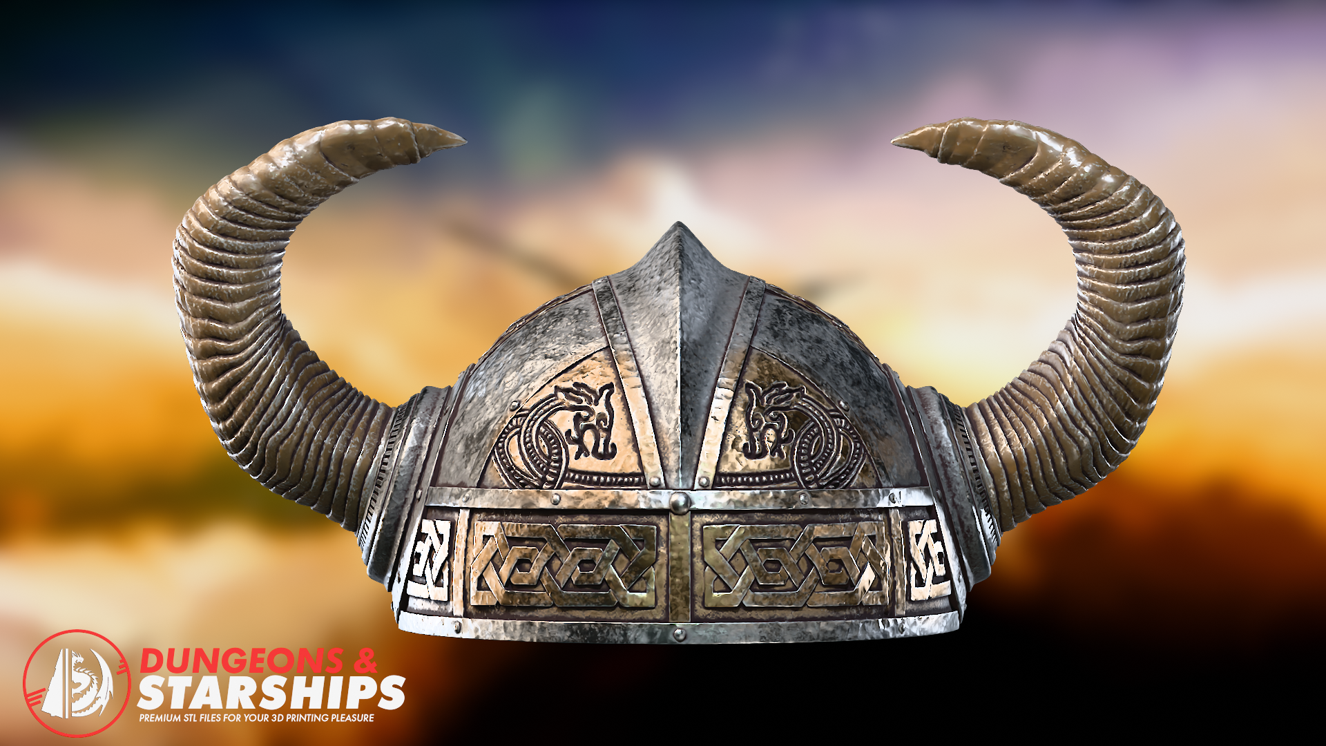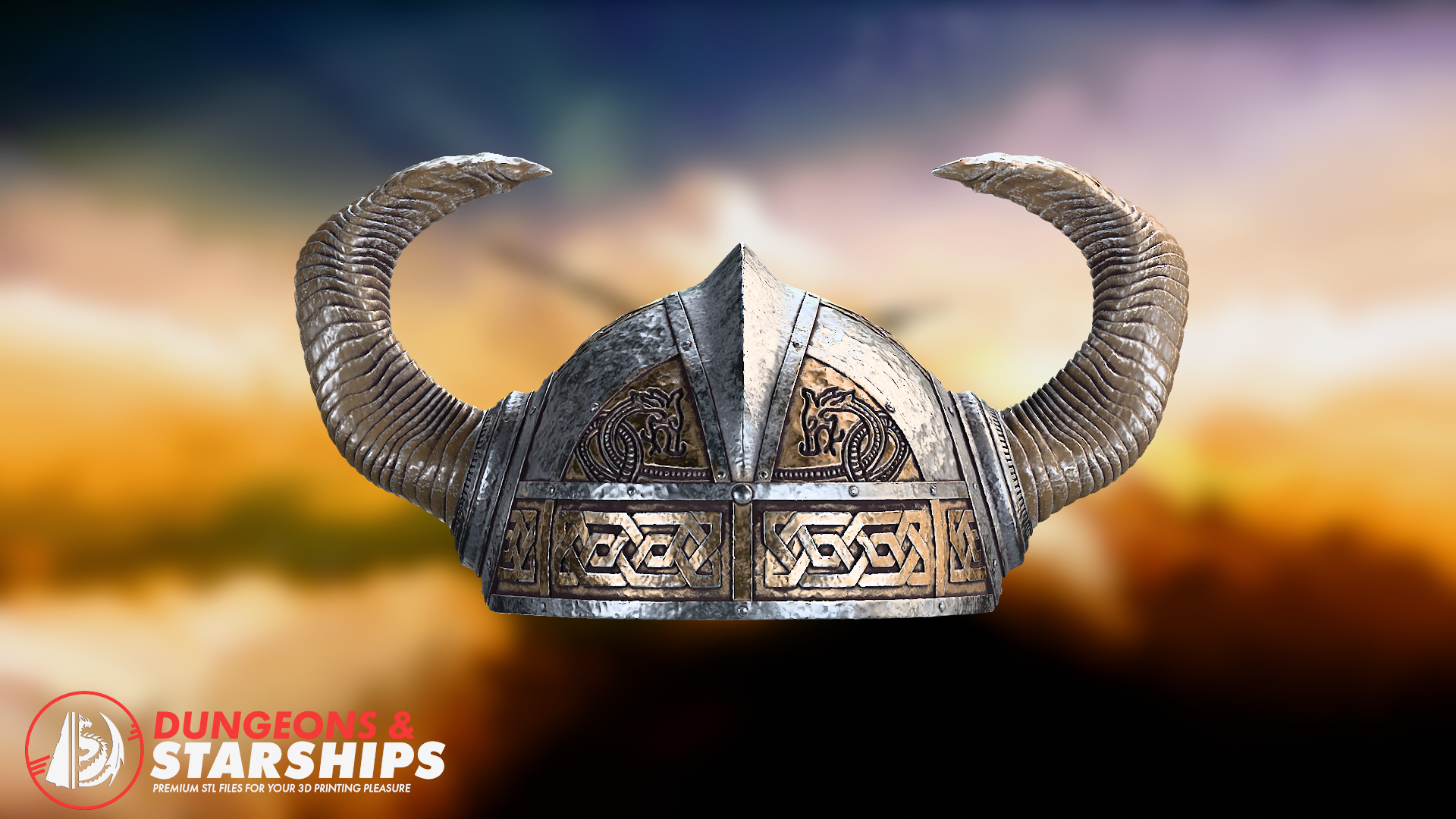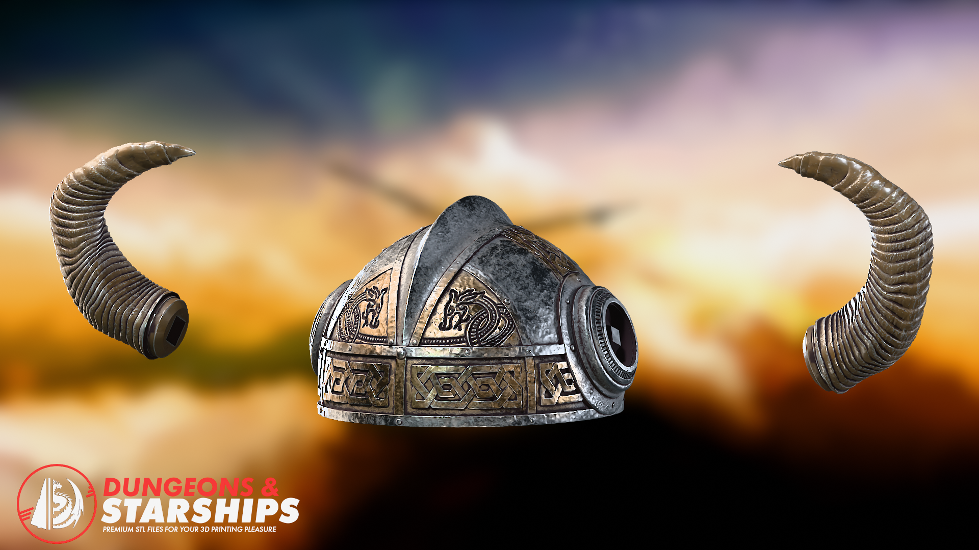 Designed for a 24" diameter head, this helmet fits on a mid sized printer in one piece with just the horns being separated off for easy printing.