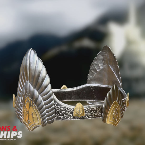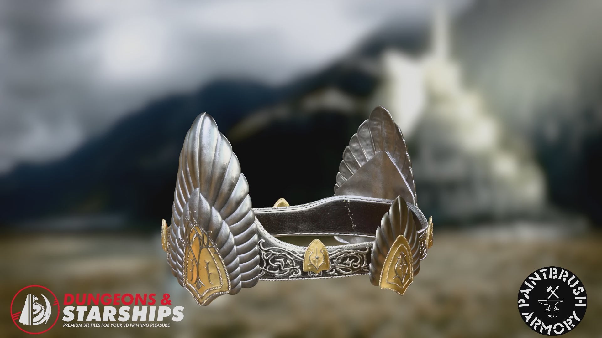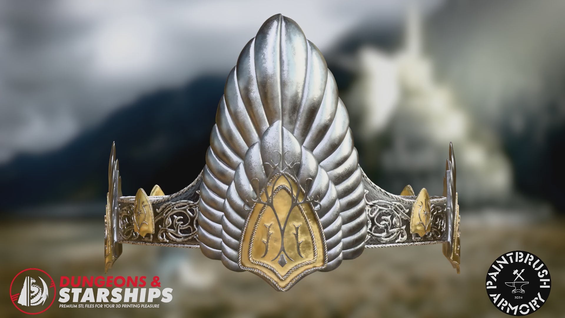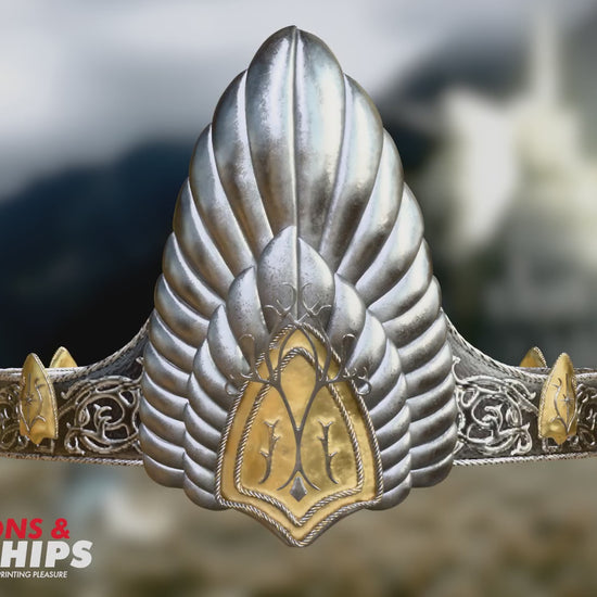 This model is our take on one of the most iconic items in the Lord of the Rings universe, the King of Gondor's Crown, as famously seen worn by Aragorn after the completion of the Fellowship's journey.