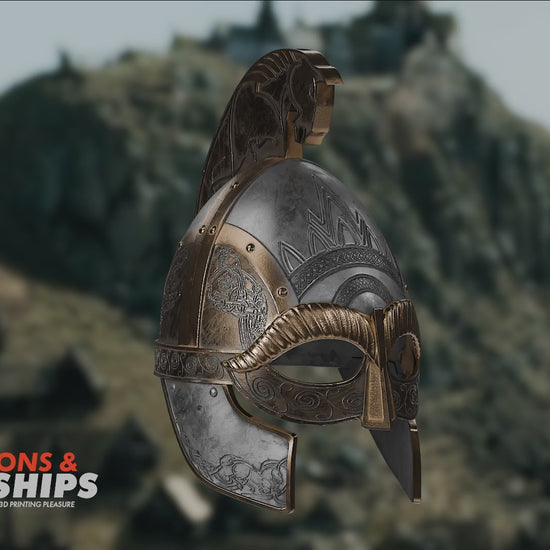 This model is our take on the iconic Rohan Royal Guard helmet as seen in the Lord of the Rings film series.