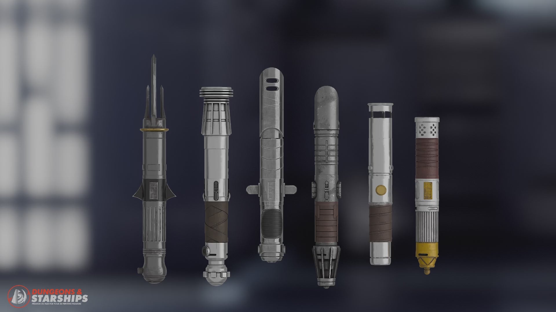 I reimagined the wave one of our VSS modular saber system to fit the specific layout and cuts required to make these fit with the design style used in the build-your-own saber from Galaxy's Edge. These will not work with a normal lightsaber core as they are larger and threaded to the pitch of the GE sabers.